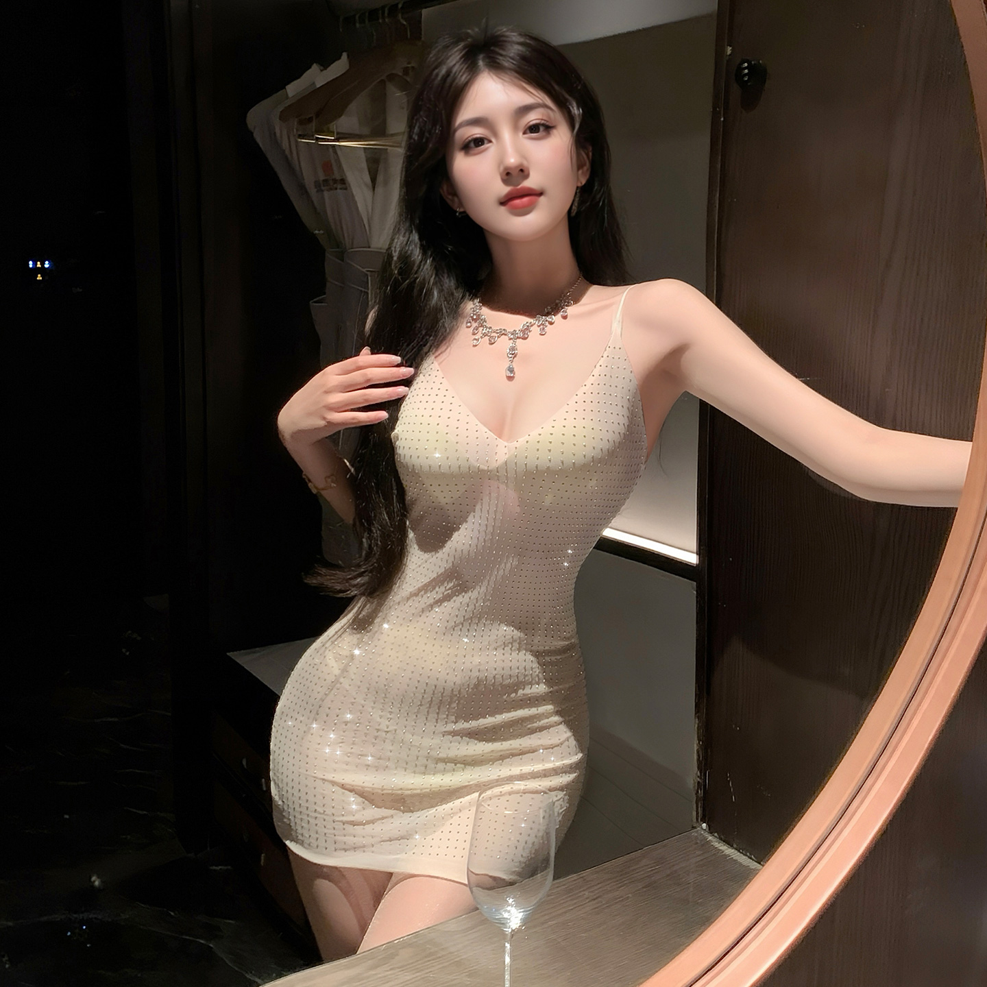 Bold, glamorous, and made to shine, this sheer dress is designed for unforgettable entrances. The deep V neckline highlights your cleavage beautifully, while the transparent fabric adds a teasing touch. Finished with sparkling rhinestone details, it catches the light with every move, giving you a confident, show-stopping look that feels sexy without trying too hard.
