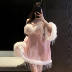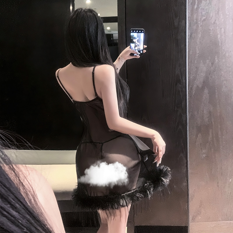 Soft, dreamy, and irresistibly flirty, this sheer tulle set is made to create a light, romantic mood. The semi-transparent fabric gives a hazy, barely-there look, while the fluffy fur trim adds a playful, luxe touch that feels cozy and cute at the same time. Lightweight and comfortable, it’s perfect for intimate moments, lounging, or when you want to feel sweet, sexy, and a little magical.