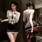 Polished on the outside, dangerously tempting underneath—this secretary-inspired set is made to blur the line between professional and provocative. Designed with a sleek, fitted silhouette, it highlights your curves while giving off that confident, in-control office vibe. Subtle details add a teasing edge, turning a classic work look into pure after-hours temptation.