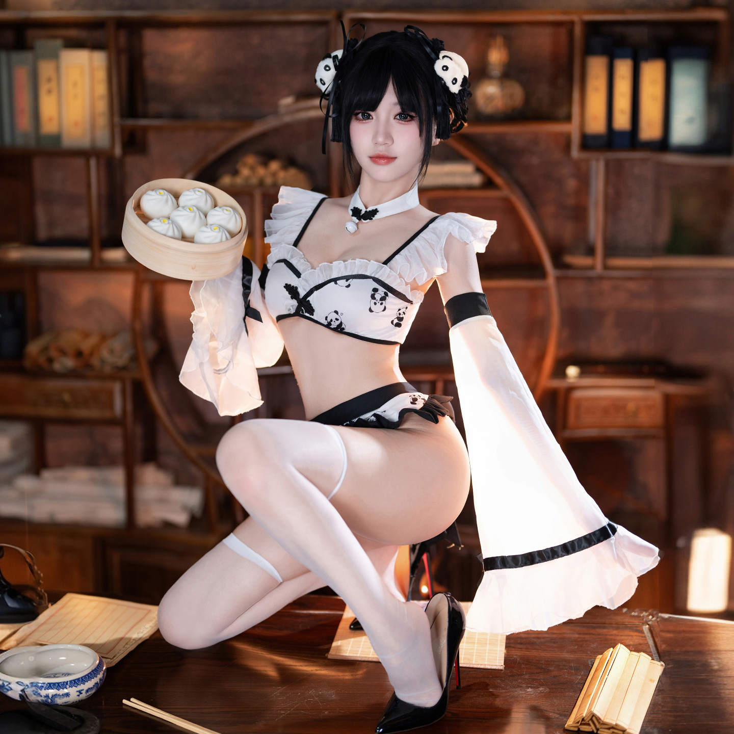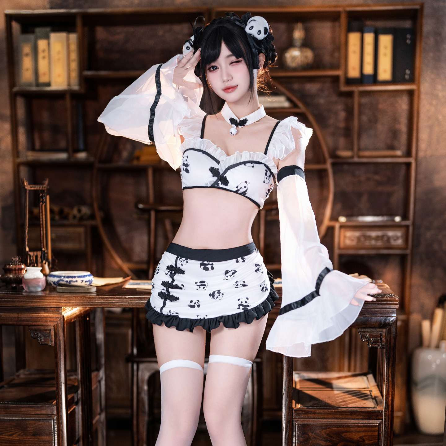 Adorable, playful, and full of charm, this Chinese-inspired costume set features cute panda prints for a youthful, whimsical vibe. Designed with a flattering fit and lightweight, comfortable fabrics, it blends traditional Chinese elements with modern style. Perfect for cosplay, themed events, or playful photo sessions, it’s a fun way to show off your sweet side.